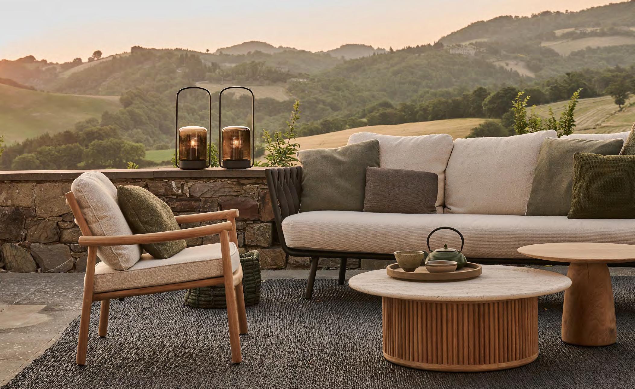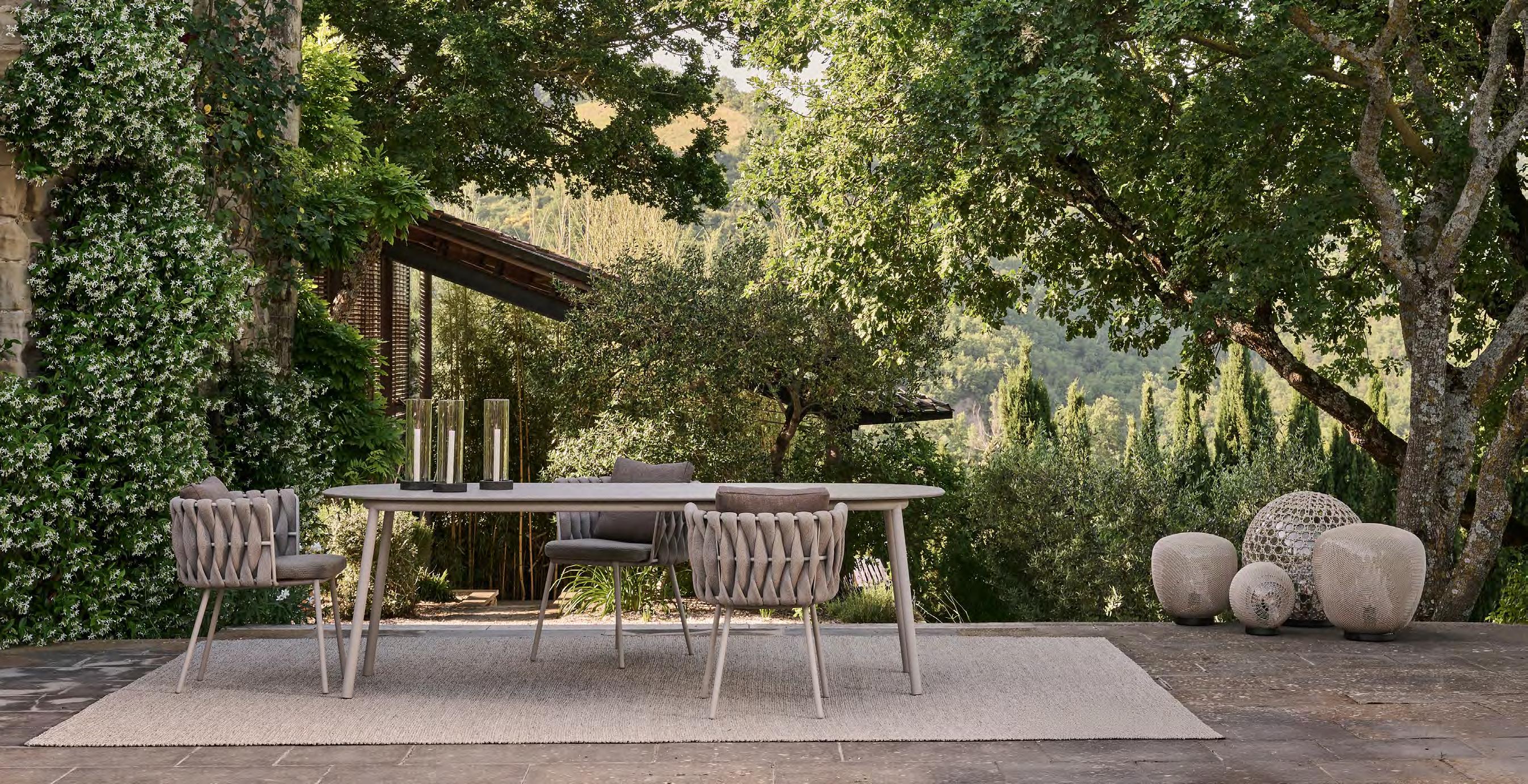 After visiting Japan, designer Monica Armani was inspired by its culture and writing system. Delicate yet uniquely shaped brushstrokes shape a world of stories and tales, as does the Ukiyo collection, effortlessly balancing elegance, design and comfort. Each collection piece perfectly blends in with nature while remaining etched into the view and your memory, its meticulous design telling a story of outdoor pleasure.