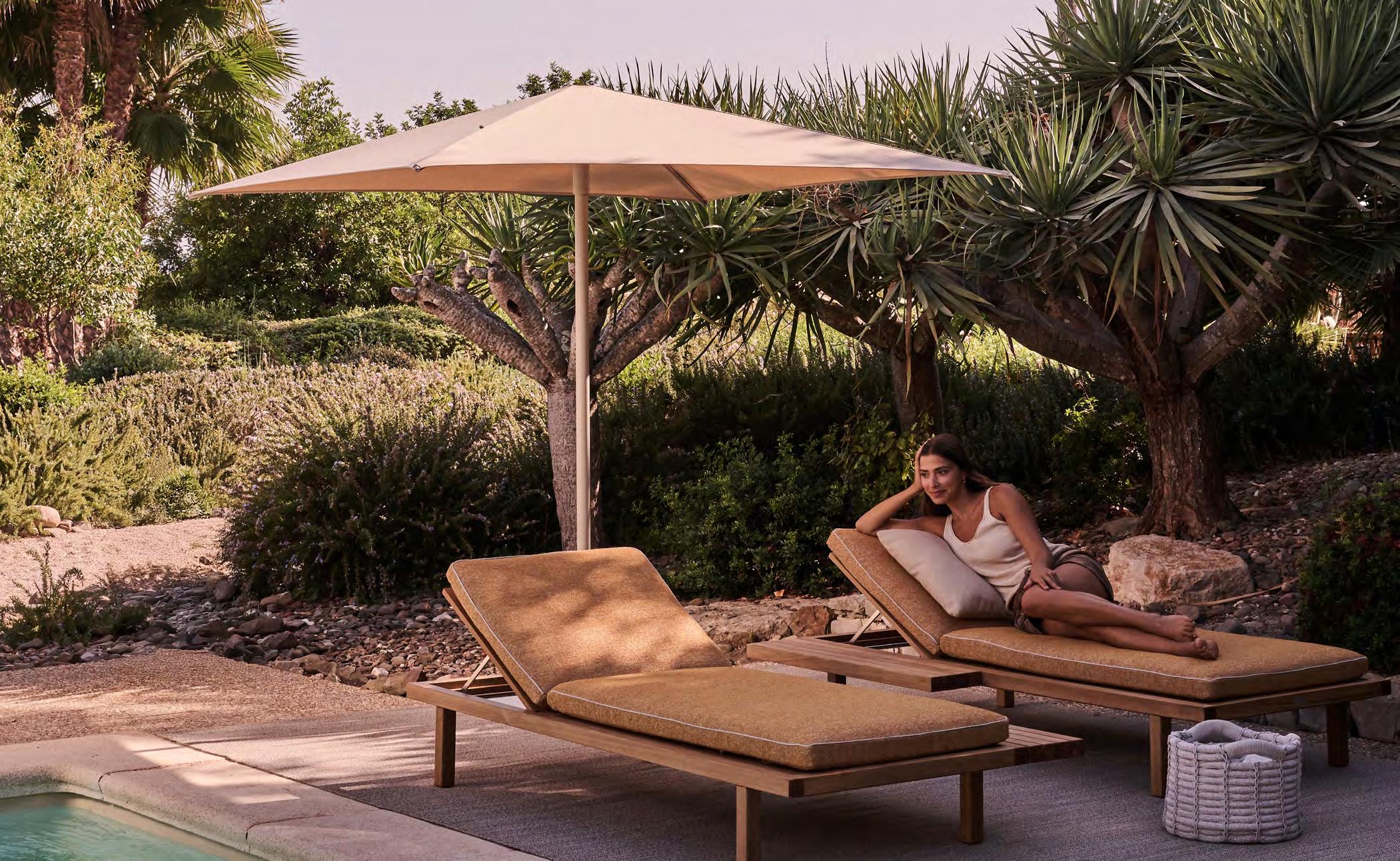 With Verna, shade becomes an experience of ease and elegance. The collection offers two distinct silhouettes: a round canopy with curved ribs for a soft, timeless look, and a square canopy with straight ribs for a clean, architectural presence. A seamless junction between mast and base creates a visually integrated profile, while the Canax®wrapped handgrip adds warmth and a crafted touch. Opening and closing is smooth and intuitive, without the need for buttons or springs, letting the geometry of the design do the work.