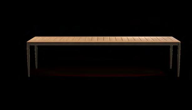 NAGOMI armchairs in dark bronze. NAGOMI dining table 320cm in dark bronze with top in teak.