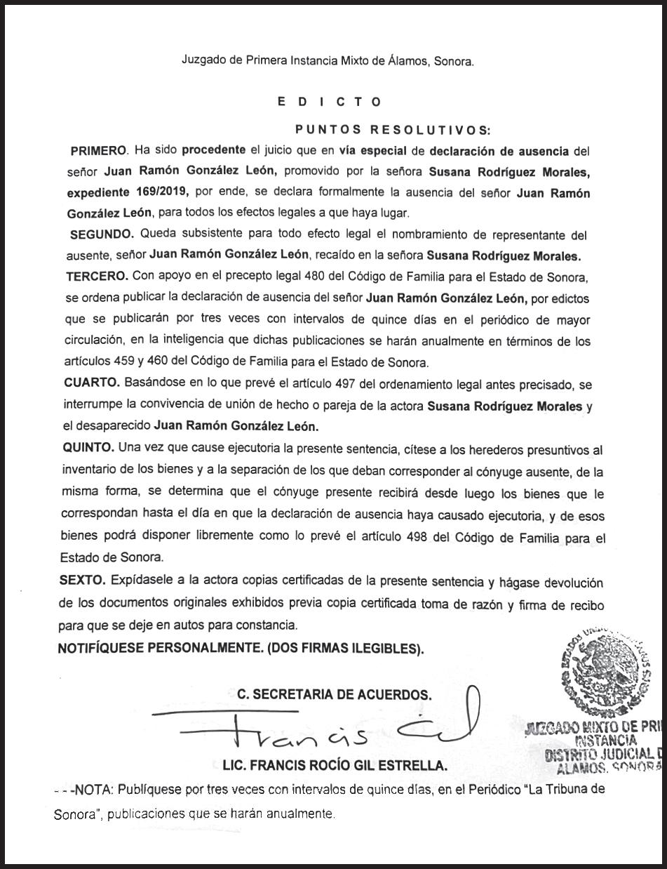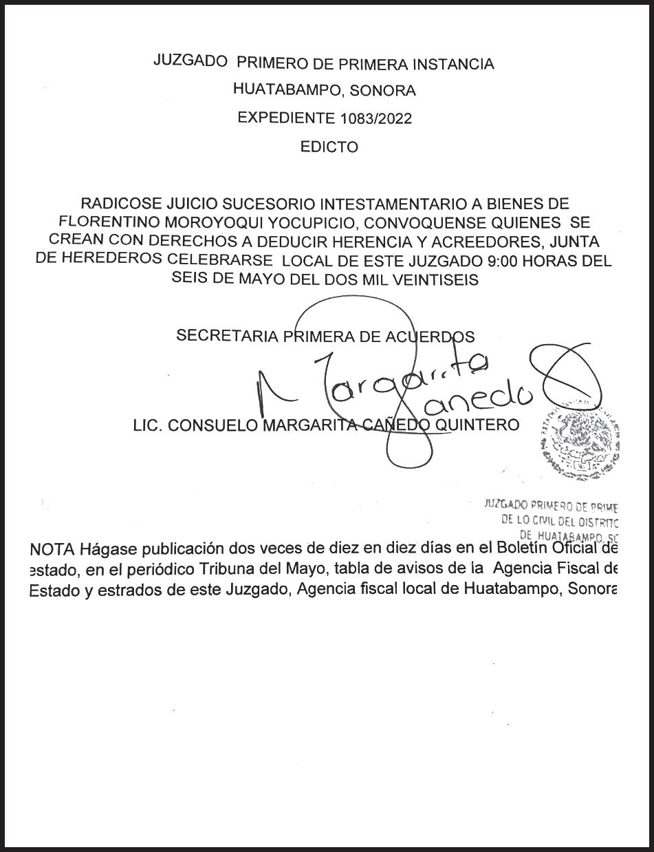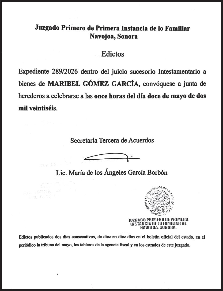 17817. Con domicilio de la publicación en Gral. José María Yáñez 2, San Benito, Hermosillo, C.P. 83190, Sonora,