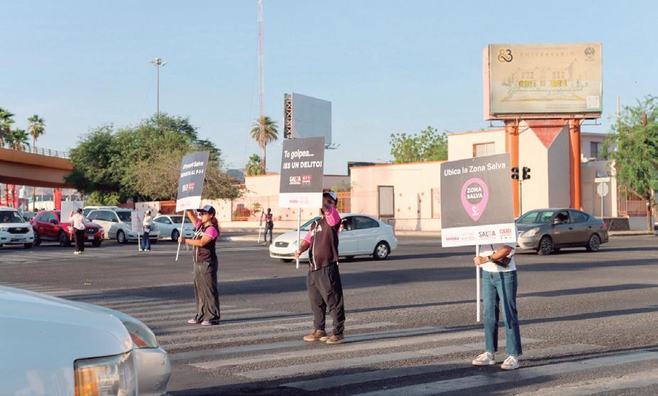 VOLANTEO En su interacción con las y los automovilistas que circulaban por el bulevar Luis Encinas y Rosales, entregaron impresos que contenían información sobre el Violentómetro que ayuda a medir los niveles de violencia.