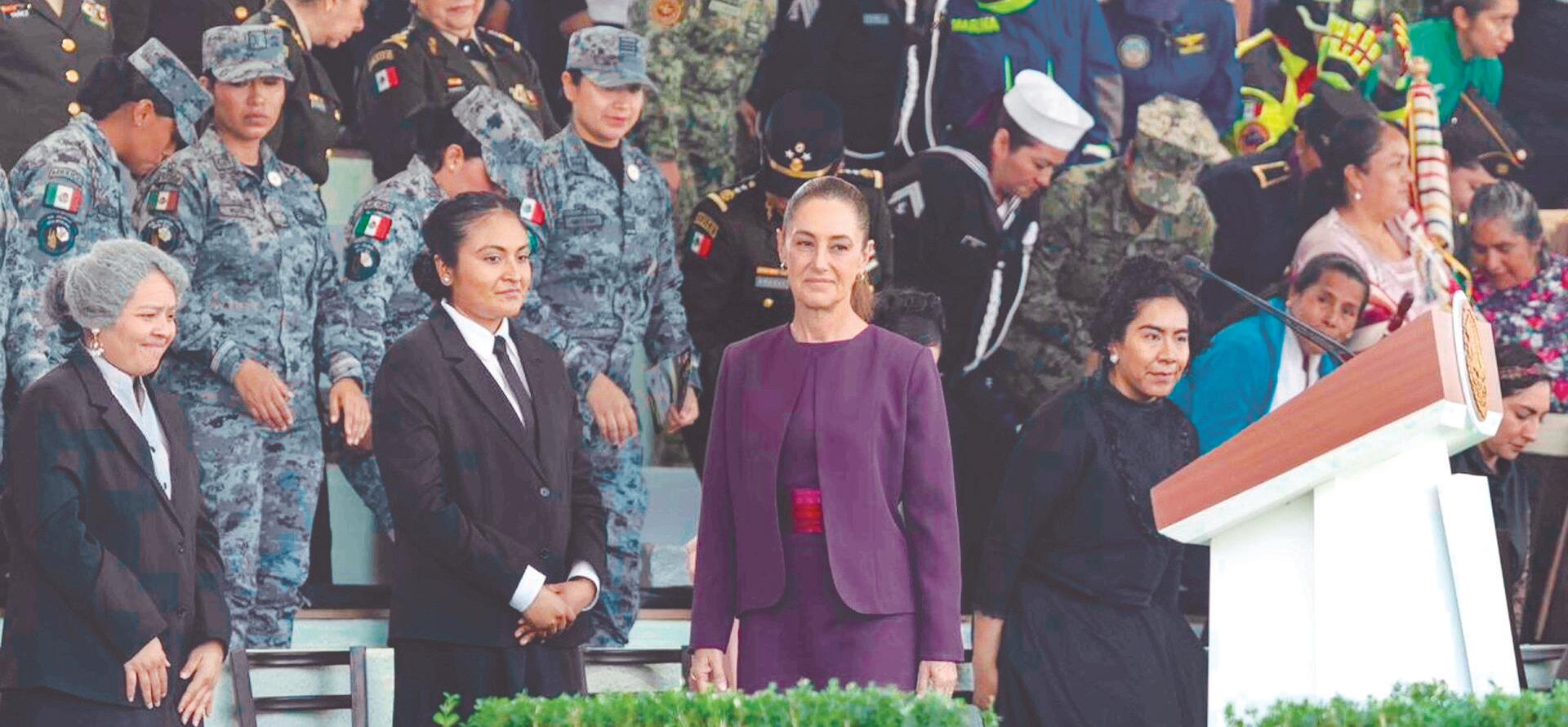 SE LES RESPETA Sheinbaum resaltó que el pueblo de México reconoce a las mujeres que forman parte de las Fuerzas Armadas, ya que su servicio fortalece al país y juntas construyen una nación justa y fuerte que teje con sus mujeres independencia y soberanía.
