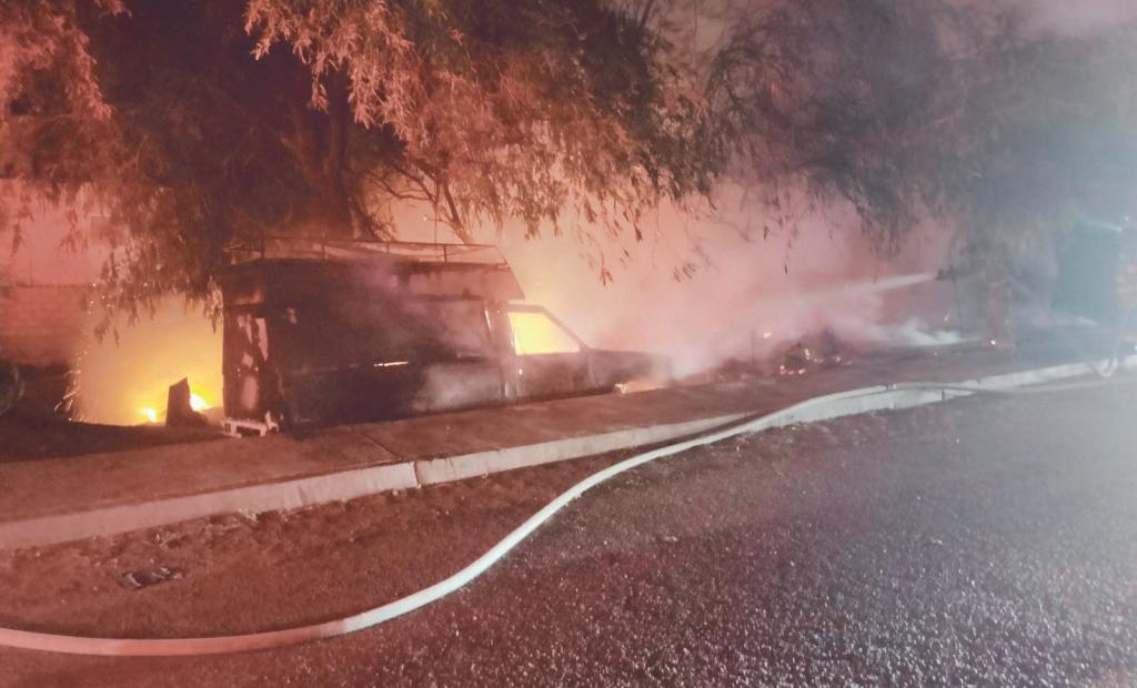 Incendio consume 10 vehículos al norte