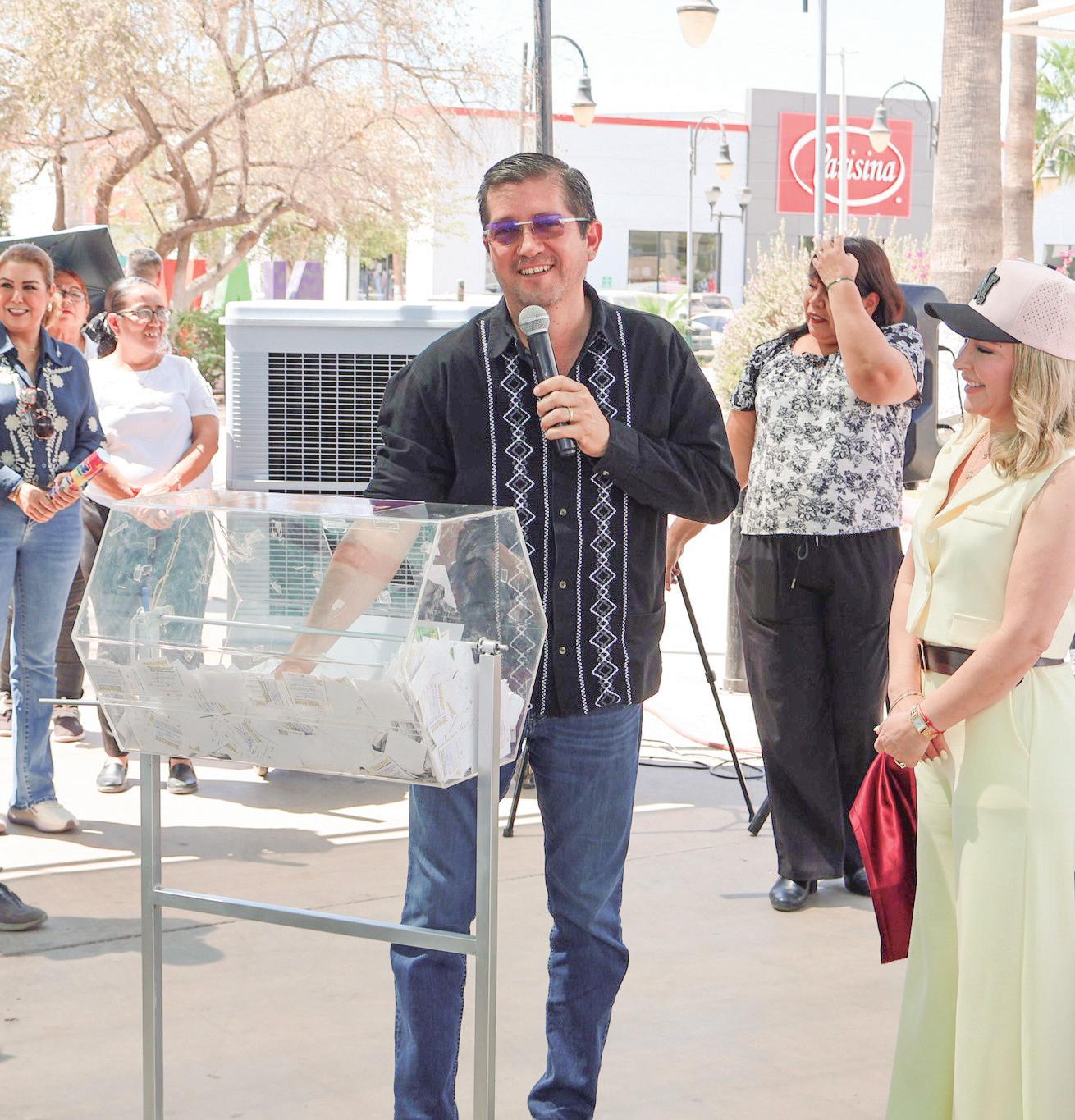 El alcalde de Navojoa, Jorge Elías Retes, realiza la rifa del automóvil
