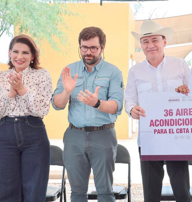 Durante el evento, Durazo hizo entrega de 36 aires acondicionados y 12 pintarrones al CBTA 161, beneficiando directamente a la comunidad estudiantil y docente, al brindar espacios más adecuados para el aprendizaje.