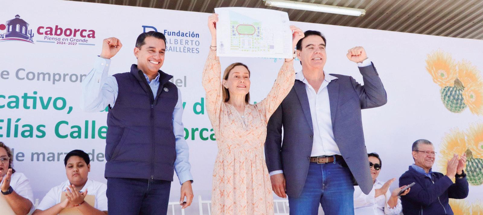 El pasado miércoles se firmó el compromiso social para la construcción del Complejo Educativo, Cultural y Deportivo ‘Plutarco Elías Calles’ en la costa de Caborca. La ceremonia contó con la participación del alcalde Abraham Mier, el secretario de Educación y Cultura de Sonora, Froylán Gámez Gamboa, y directivos de la Fundación Alberto Baillères.
