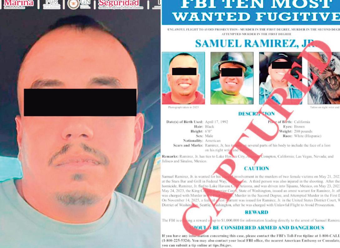 Una hora y 13 minutos después de ser incluido en la lista de los 10 Fugitivos Más Buscados del FBI, las fuerzas federales de México detuvieron a Samuel Ramírez Jr., por quien Estados Unidos ofrecía una recompensa de un millón de dólares.