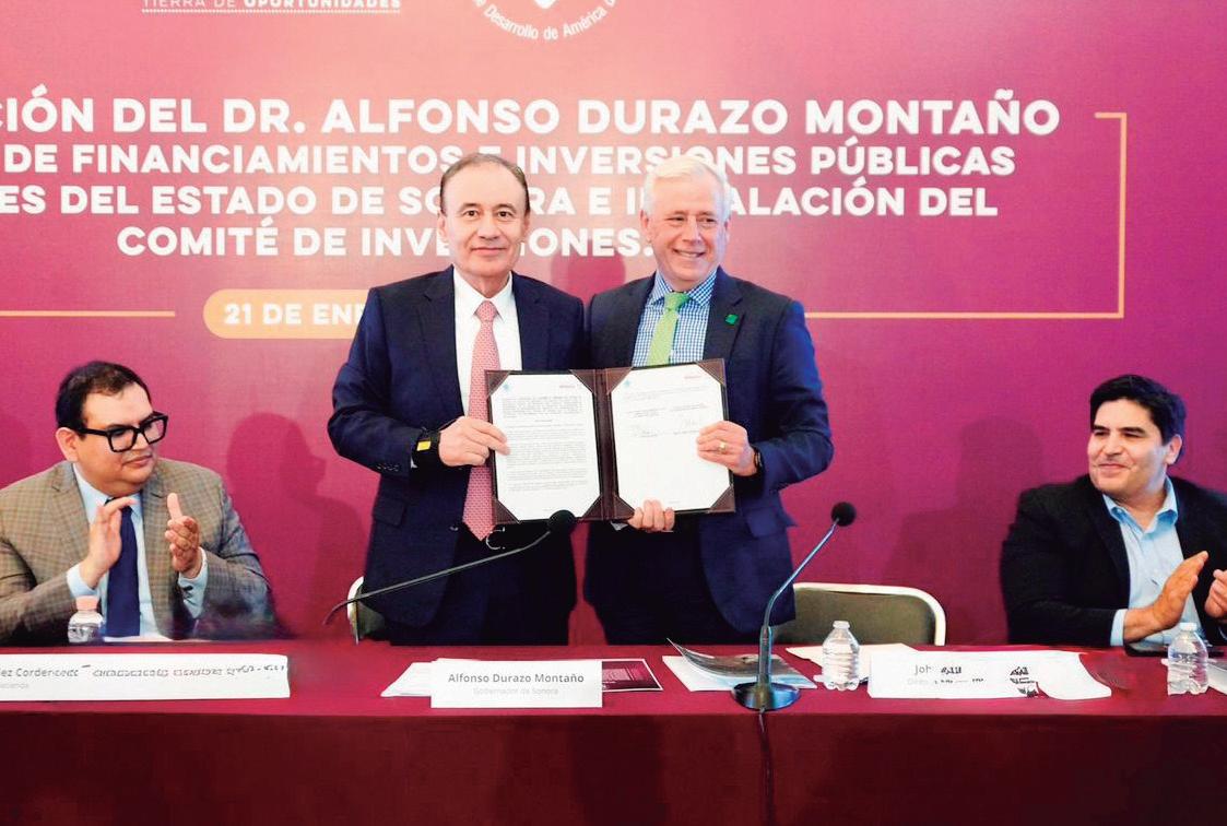 Acompañado de Carlos Hernández Cordero, secretario de Hacienda del estado de Sonora, Durazo irmó el acuerdo de colaboración con el Banco de Desarrollo de América del Norte (NadBnak), el cual contempla asistencia técnica financiera, así como asesoría en sos -