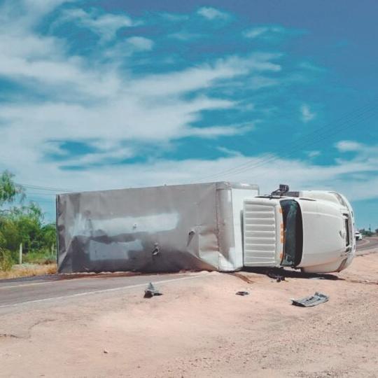 Un camión con caja seca que transportaba contenedores con diésel volcó la mañana de ayer en la carretera federal número 15, a la altura de Empalme, con el que suman cuatro los accidentes registrados al sur de Sonora y con derrame de materiales peligrosos, en apenas una semana.