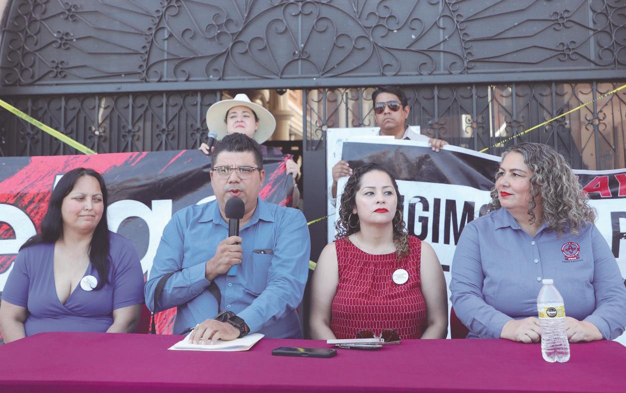 “Y las señoras que están ahí nos impiden el paso, entonces mandamos un mensaje para pedir que nos dejarán entrar, pero los manifestantes no nos impiden entrar y no nunca nos abren, nos dicen que vayamos a checar la puertas trasera, fuimos a checar la puerta trasera, pero los motores de las puertas eléctricas están apagados”, dijo.