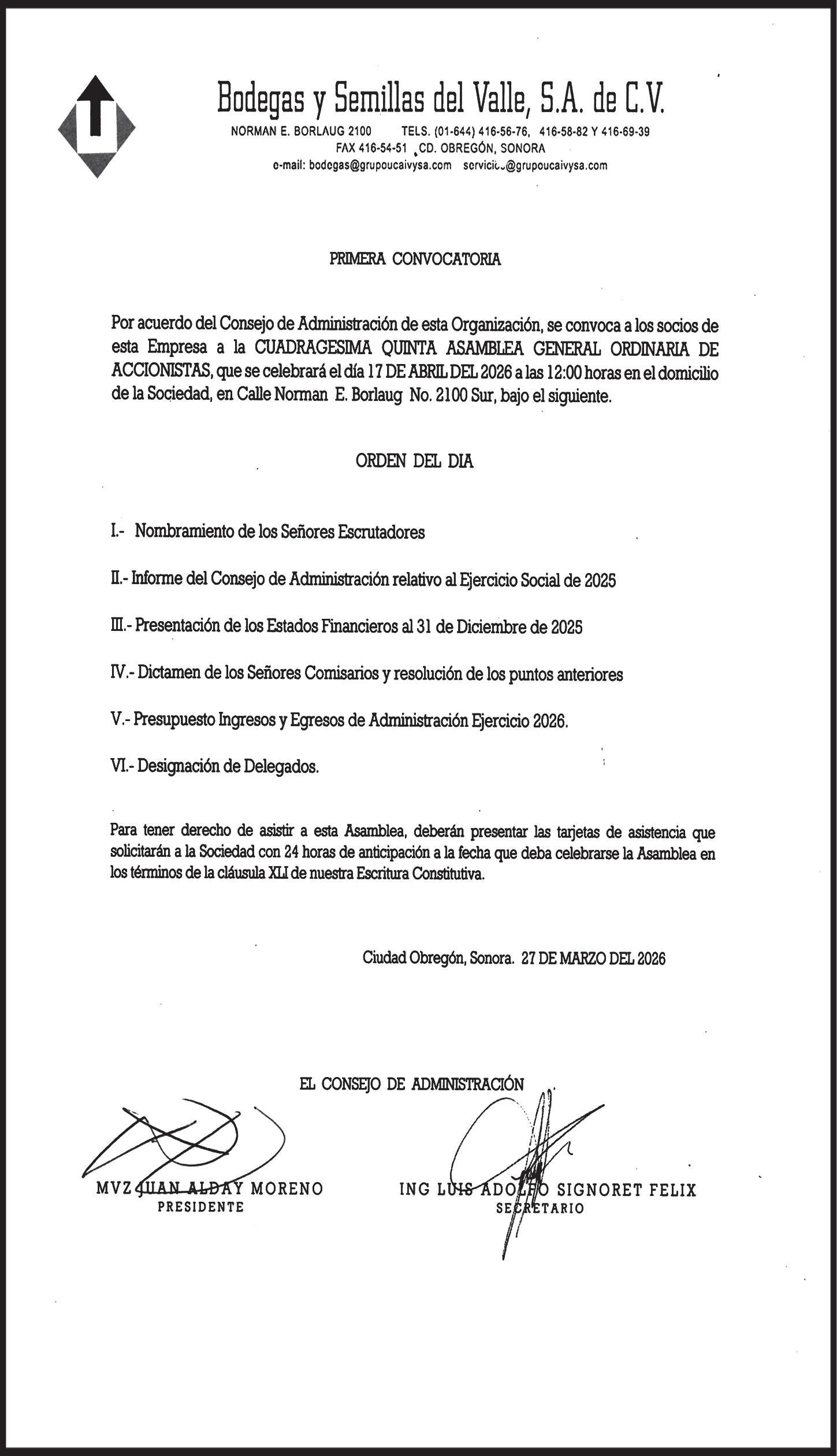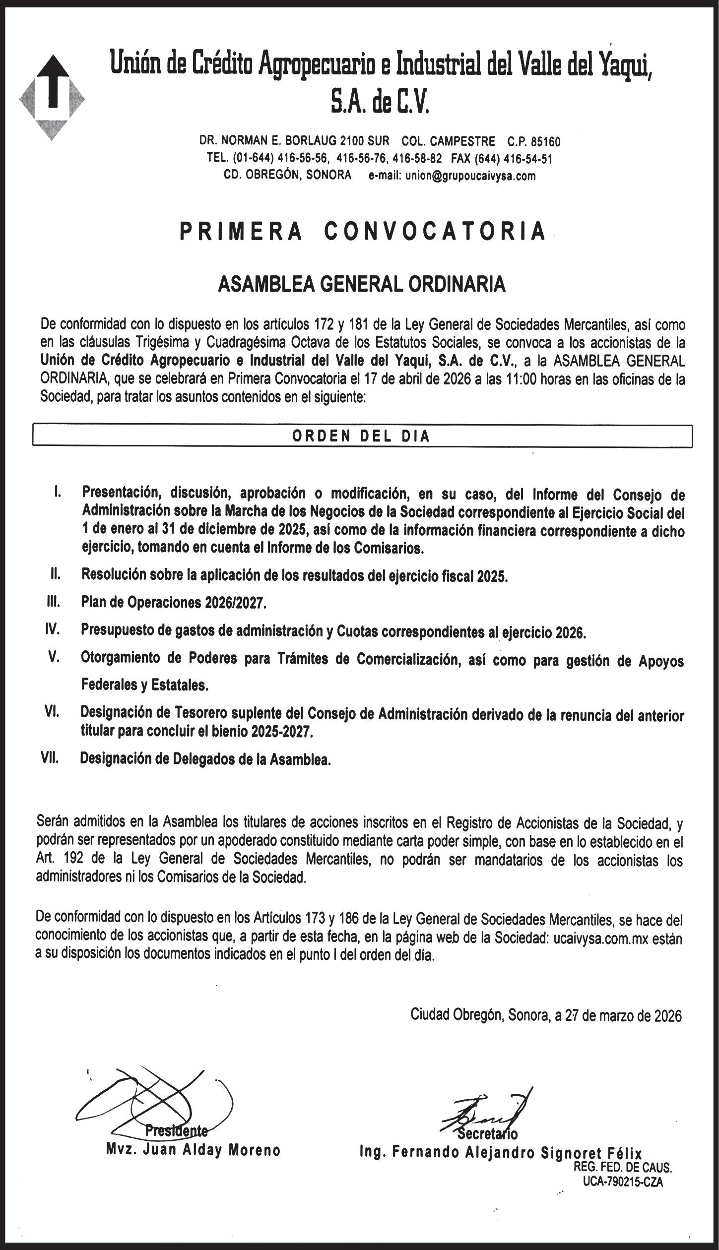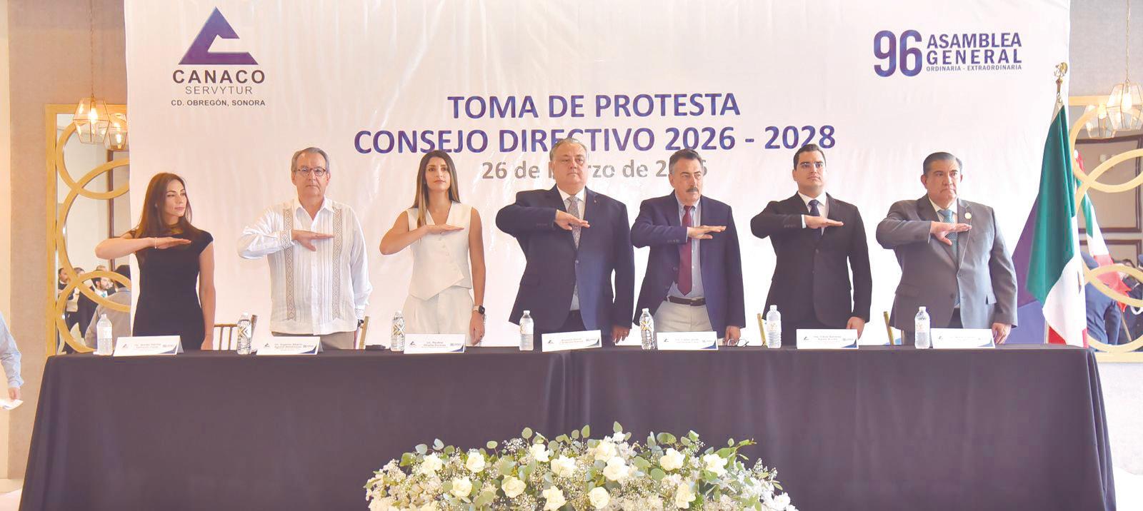 Sexta Asamblea General Ordinaria de Canaco Servytur, rindió protesta el nuevo Consejo Directivo para el periodo 20262028, encabezado por César Aguiar Arnold. El acto protocolario fue encabezado por el subsecretario de Economía, Eugenio Alberto Aguirre Maldonado, quien tomó protesta a las y los integrantes del organismo empresarial, marcando el inicio de una nueva etapa para el sector comercio, servicios y turismo en Cajeme.