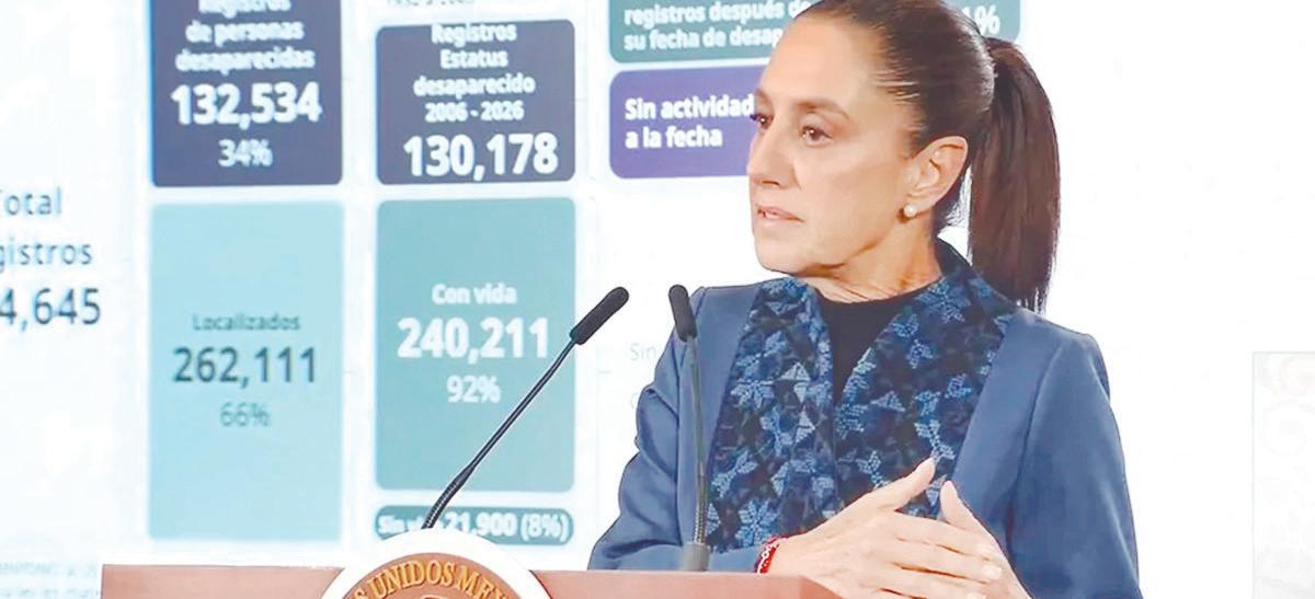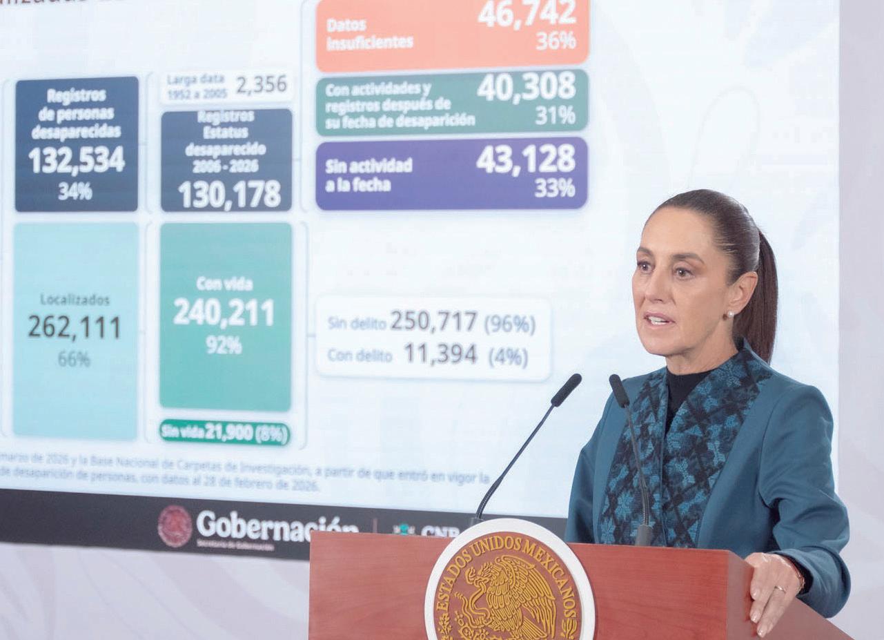 EL PAÍS REGISTRA MÁS DE 132 MIL DESAPARECIDOS: SHEINBAUM; PRESENTAN INFORME DE BÚSQUEDA >MÉXICO PÁG. 3A