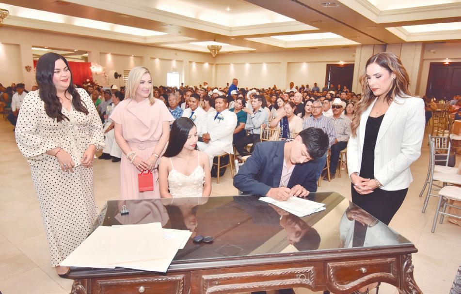 matrimonio colectivo fue gratuito, lo cual representó un ahorro de aproximadamente dos mil 500 pesos para los interesados. Luz Argel Gaxiola Vega, presidenta del DIF, felicitó a los recién casados por decidirse a dar este paso que viene a dar certeza legal a la unión, reafirmar la relación, ya sea de soltería o con po-