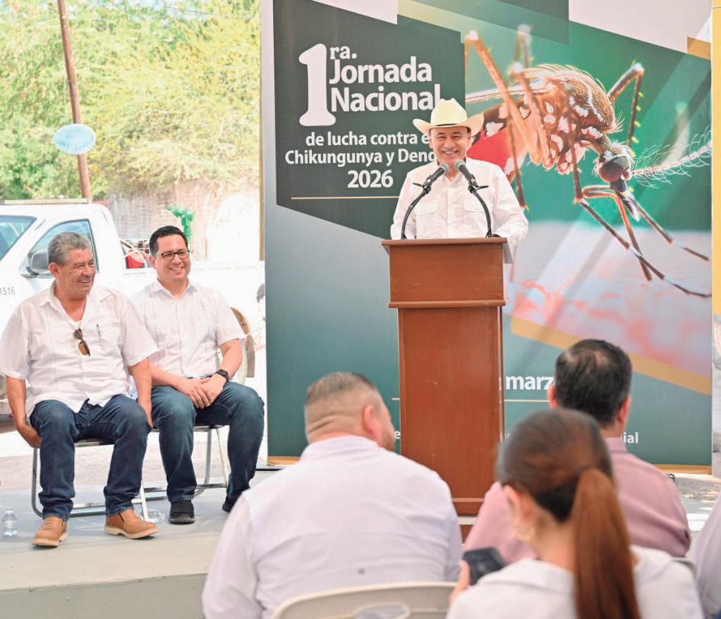 Como parte de su compromiso con la salud y el abasto de agua para el bienestar integral de las y los sonorenses, el gobernador Alfonso Durazo Montaño encabezó una gira de trabajo en el sur del estado, donde arrancó la Primera Jornada Nacional de Lucha contra el Dengue y Chikungunya 2026 en la comunidad de Masiaca, y entregó la rehabilitación de pozos de agua potable, así como maquinaria pesada. El mandatario estatal inició su gira en Navojoa con el arranque de la Jornada Nacional en la comunidad de Masiaca, estrategia que se implementa de manera simultánea en las 32 entidades del país y que busca reducir los riesgos de transmisión de estas enfermedades mediante acciones intensivas de prevención y control vectorial. En su mensaje, el gobernador Durazo destacó que esta campaña contempla acciones focalizadas en