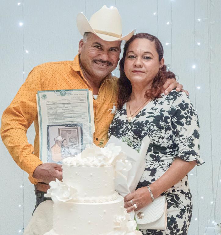 Parejas felices al recibir su acta de matrimonio durante la jornada