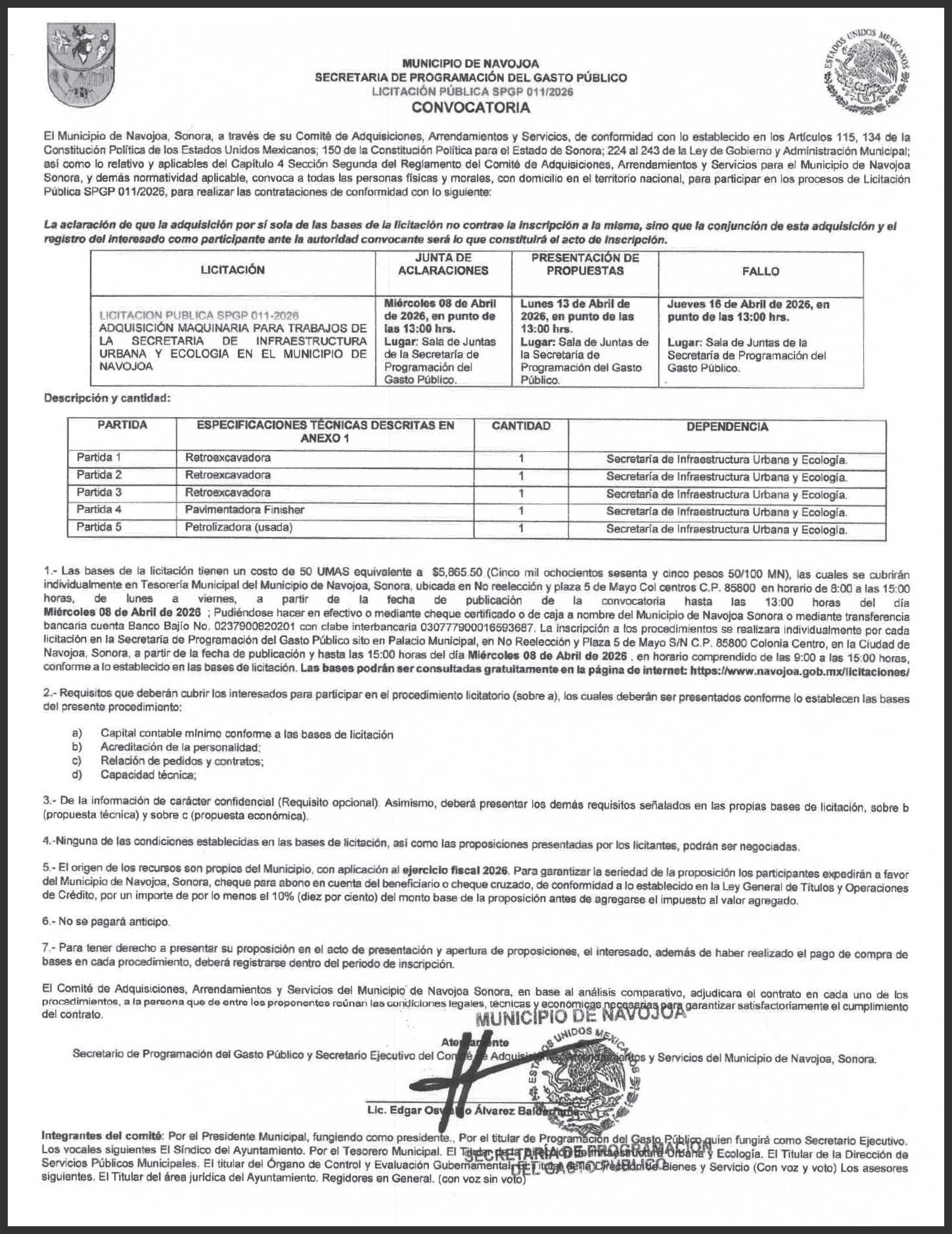 Jorge Alberto Elías Retes, presidente municipal de Navojoa, informó que gracias a la donación de nueva ma-