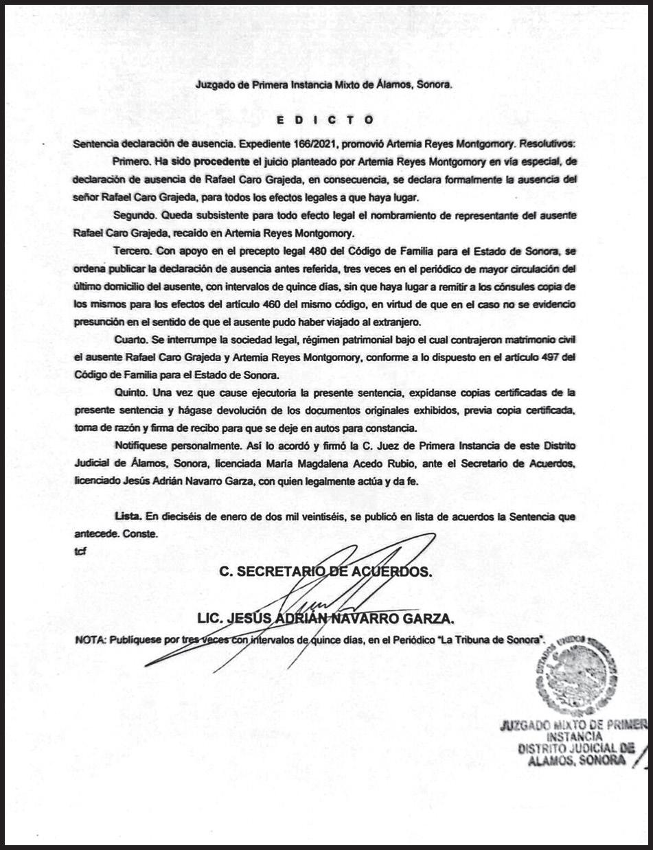 Explicó que en la Fiscalía General de Justicia del Estado de Sonora (FGJES) le fue informado que los