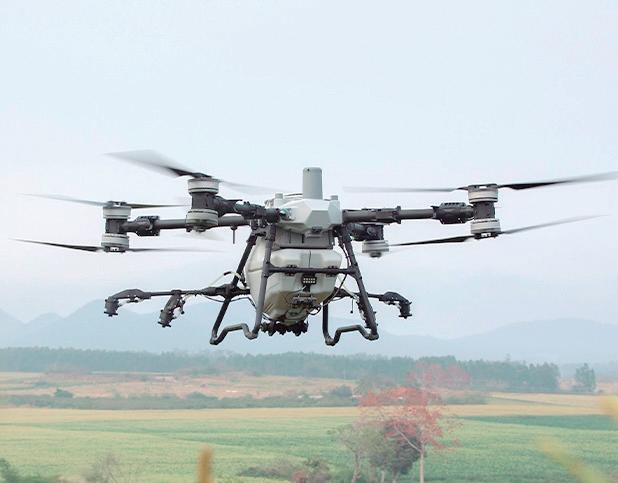 Operaciones en campos amplios: 36% de mejora en la eficiencia operativa, 30 litros por minuto de tasa de flujo, entre 5 y 13 metros de ancho de pulverización efectiva y 20 m/s de velocidad de vuelo.