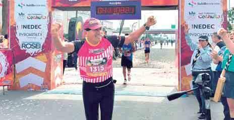 Y vaya que supo manejar sus tiempos, ya que logró cruzar la meta en 4:10:51 para subir a lo más alto del podio en la categoría 70 años y más; sacando un tiempo de más de 40
