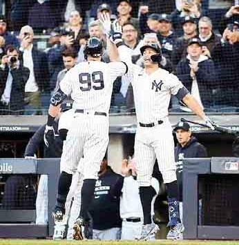 Giancarlo Stanton y Aaron Judge sentenciaron temprano a Cleveland con un par de jonrones y los Yanquis de Nueva York se impusieron ayer 5-1 ante los Guardianes en el quinto juego de la serie divisional de la Liga Americana para citarse otra vez con Houston por el cetro de la Liga Americana.