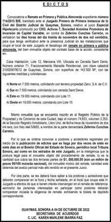 Según el acta de fallo de la licitación pública No. LPO926055986-085-2022, por parte del Instituto Sonorense de