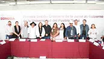 Con la entrega de la propuesta de terna para rector o rectora, se llevó a cabo la Primera sesión ordinaria de la Junta de Gobierno de la Universidad del Pueblo Yaqui, encabezada por Leticia Ramírez Amaya y Aarón Grageda Bustamante.