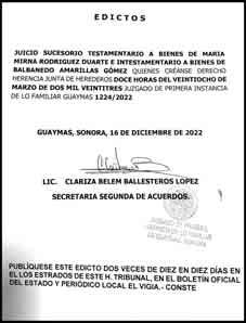 Gilberto Félix Bours Presidente de Consejo Sergio García Vargas Director General César Tovar Longoria Director Editorial • Conmutador: (644) 410-3030 • Publicidad: (644) 410-3000 TRIBUNA DEL YAQUI, publicación de circulación diaria. Año LI. Certificado de Licitud de Título y Contenido: 16469. Reserva de Derechos al Uso Exclusivo: 04-2016-041313515500-101, otorgado por el Instituto Nacional del Derecho del Autor. Publicado y distribuído por TRIBUNA DEL YAQUI S.A. DE C.V., Domicilio de la impresión en Guadalupe Victoria No.115 C.P. 85160 Col. Campestre, Ciudad Obregón, Sonora, Tel. 410 30 30. El contenido de los artículos es responsabilidad exclusiva de los autores. Queda estrictamente prohibida la reproducción total o parcial de los contenidos e imágenes de la publicación sin previa autorización de GILBERTO FELIX BOURS. Miembro de la Sociedad Interamericana de Prensa.