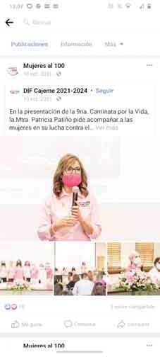 “Ahorita lo tomo como una nota que confundió las cosas, que no fue acertada, es falso lo que está ahí y se puede buscar la información correspondiente. Pido respeto para el DIF y para Mujeres al 100”, añadió. Como se describe líneas arriba, desde su origen (inicios de 2021), las cuentas de redes sociales de Mujeres al 100 se dedicaron a promover la candidatura de Javier Lamarque, como se muestra en las imágenes que ilustran esta nota.