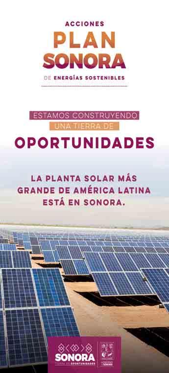En el marco de la presentación del Plan Sonora de Energía Sostenible a presidentes de cámaras empresariales nacionales, el mandatario estatal destacó que esta iniciativa está conformada por cuatro vertientes: explotación y aprovechamiento del litio, generación de energía eléctrica a partir de energía solar, licuefacción de gas natural, y conformación de una empresa logística encargada de administrar el puerto de Guaymas, así como los aeropuertos de esta ciudad y de Ciudad Obregón.