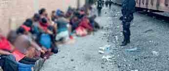 Más de 60 migrantes fueron asegurados en los patios de Ferrocarriles de México en Torreón, no sin antes confrontar con palos y piedras a los agentes municipales, estatales y del INM que acudieron.
