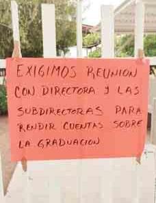 la educación de nuestros hijos, nuestra principal molestia, es que se pidieron 300 pesos para el tema de la graduación, dinero que la mayoría de los padres de familia ya pagaron, y hasta ahorita no se sabe dónde quedó”.