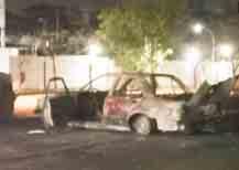 En la cabecera municipal de Apatzingán, los grupos criminales robaron vehículos y les prendieron fuego; también lanzaron bombas molotov a unos comercios.