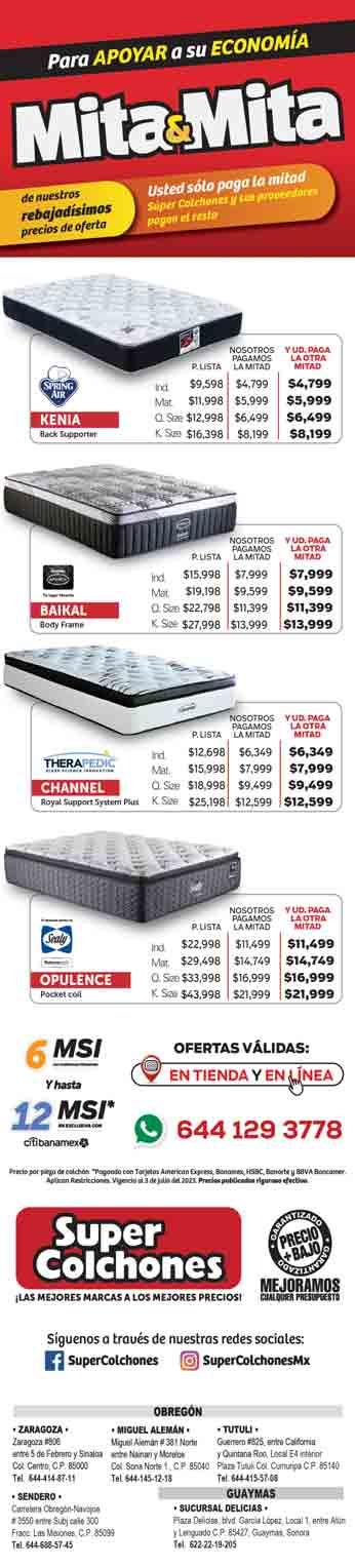 S SÁBADO 1.7.2023 SUR DE SONORA AÑO LV. ED 21836 12 páginas 2 cuerpos $12.00 facebook.com/tribunasonora twitter.com@tribunasonora Libre expresión al