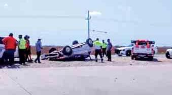 Durante la tarde de este lunes, un vehículo tipo sedán terminó volcado sobre la carretera internacional Los MochisNavojoa, luego de que el conductor se quedara dormido y terminara impactándose contra un montículo de tierra, a la altura del Parque Industrial de Navojoa, registrando pérdidas totales.