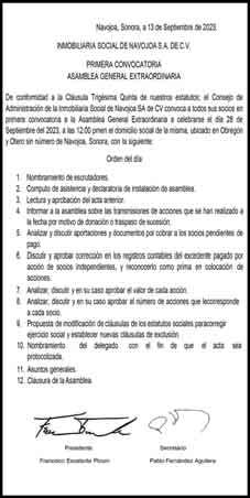 10:30 horas: entrega del documento en el Congreso de Sonora