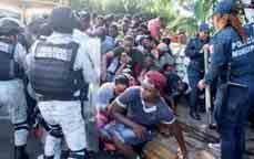 Migrantes, principalmente haitianos, irrumpieron en las oficinas de la Comisión Mexicana de Ayuda a Refugiados (Comar) en esta ciudad, para ingresar al inmueble en busca de iniciar sus trámites, no se reportaron heridos.