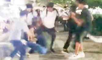 MÁS PELEAS Después del suceso en el CBTIS 40 la tarde del viernes, estudiantes del Conalep protagonizaron otra riña en la plaza de los Tres Presidentes donde más de 20 jóvenes se vieron envueltos en la pelea; piedras, patadas y puñetazos salieron a relucir, sin que existieran detenidos y