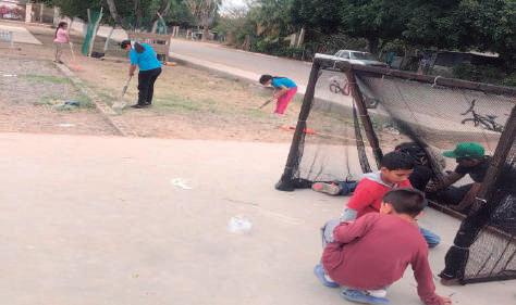 Meza Coronado de oficio enfermera y oriunda del lugar, relató que el grupo infantil ha realizado labores de limpieza, deshierbe y pintura en la cancha y plaza, dando a esto una mejor imagen al ejido, esto con recursos propios en algunas ocasiones.