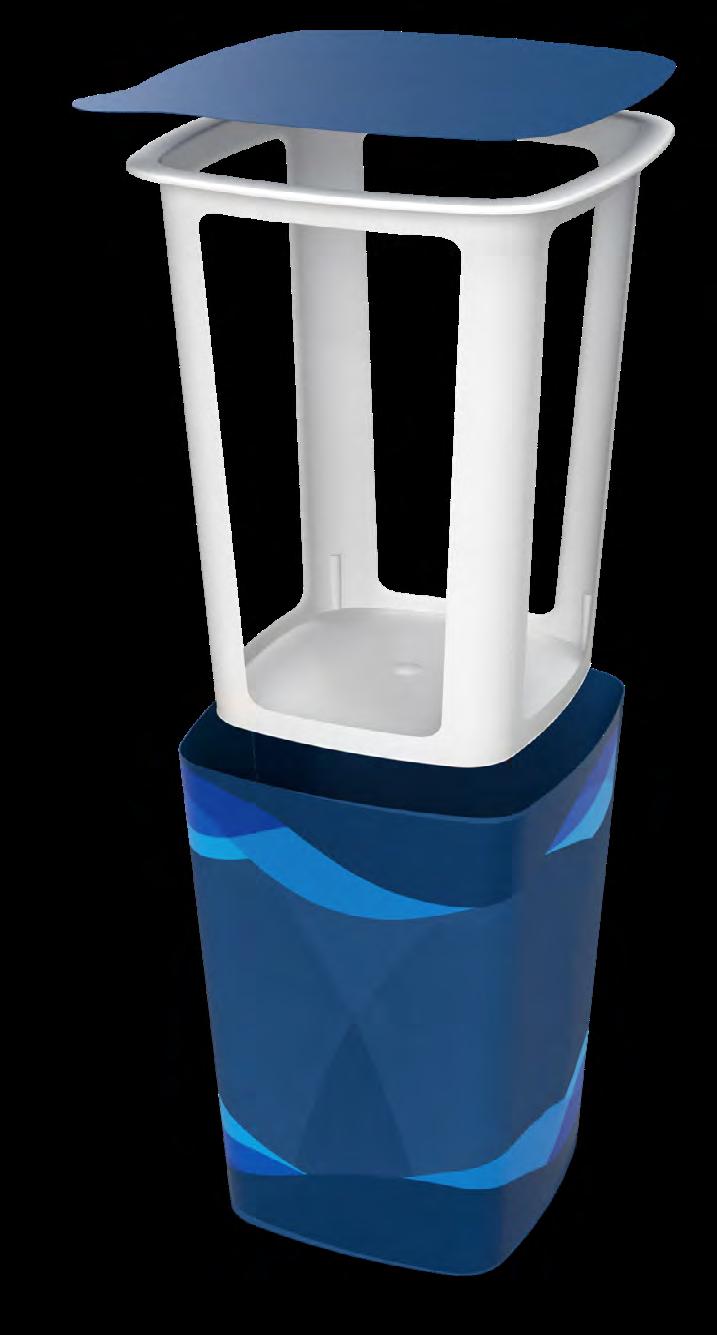Able to be processed at material recovery facilities (MRFs), nests for transport, reduces plastic use, and maintains strength while being lightweight.