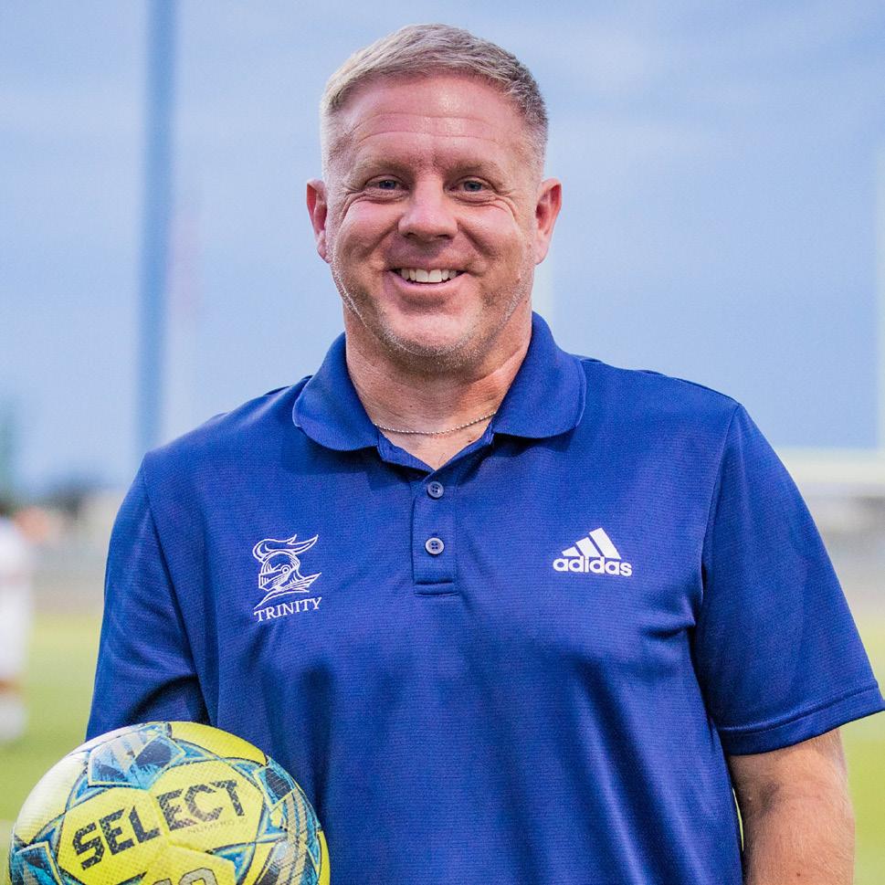 Andy Hackett joined the coaching staff at Trinity in 2023. He began by coaching the girls team and was named All-Metro coach of the year. He led the girls team to 2nd place at State that year. In 2024, he was named the boys coach as well and coached the boys to a State championship. Hackett has an extensive background in soccer. He played semi-professionally for the Armed Forces Europe soccer team when stationed in Europe, played for the All-Air Force team, and played at South Puget Sound Community College in Washington.