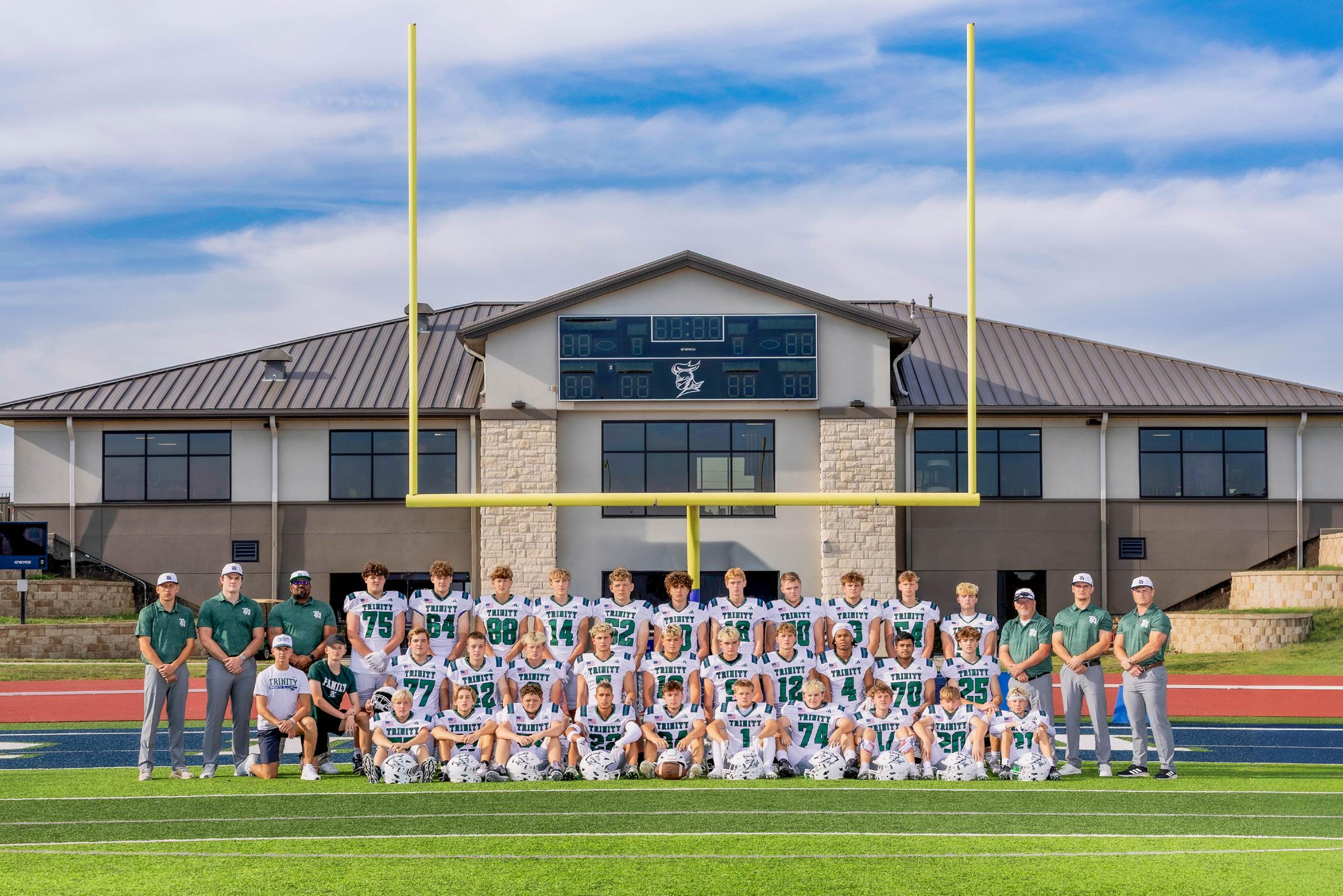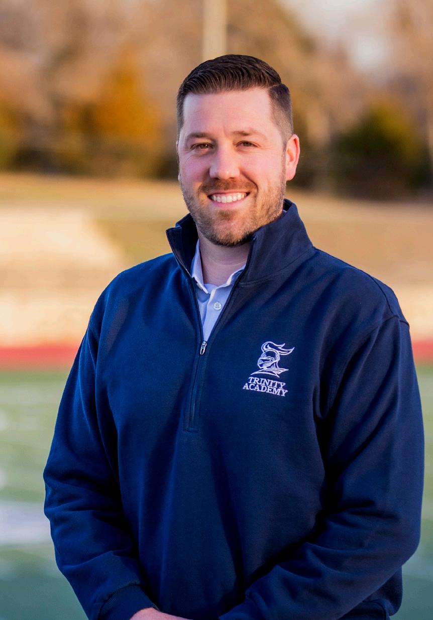 Coach Schadler has an impressive athletic and leadership background. In 2014, he was named the Barry Sanders Male Athlete of the Year for the state of Kansas, after leading the nation with 14.1 yards per carry. He was a first-team all-state running back and defensive back for Hesston High School, a Shrine Bowl participant, and a state champion in basketball and track and field. Schadler played college football at the University of Kansas, where he was an All-Big 12 Kickoff Returner and still ranks fourth in KU history in kickoff return yards. Post-college, he was invited to workouts with the Kansas City Chiefs, several CFL teams, and even the U.S. Bobsled team. He has worked as a certified personal trainer, served on the strength and conditioning staff at Friends University, and coached defensive backs at Friends. He currently serves as associate pastor at Vima Church in Wichita and has taught 8th grade Bible at Trinity. Schadler holds a master’s degree in Christian Leadership from Fuller Theological Seminary.