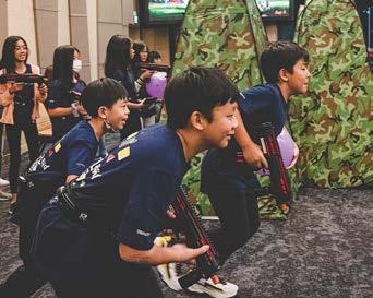 laser tag, the variety of experiential games kept the children excited and the more competitive ones on their toes. The game with the most laughter was perhaps ‘The Dino Carpet’ where children enthusiastically used materials such as newspaper, masking tape, and straw to creatively transform their adult group leader into a dinosaur.