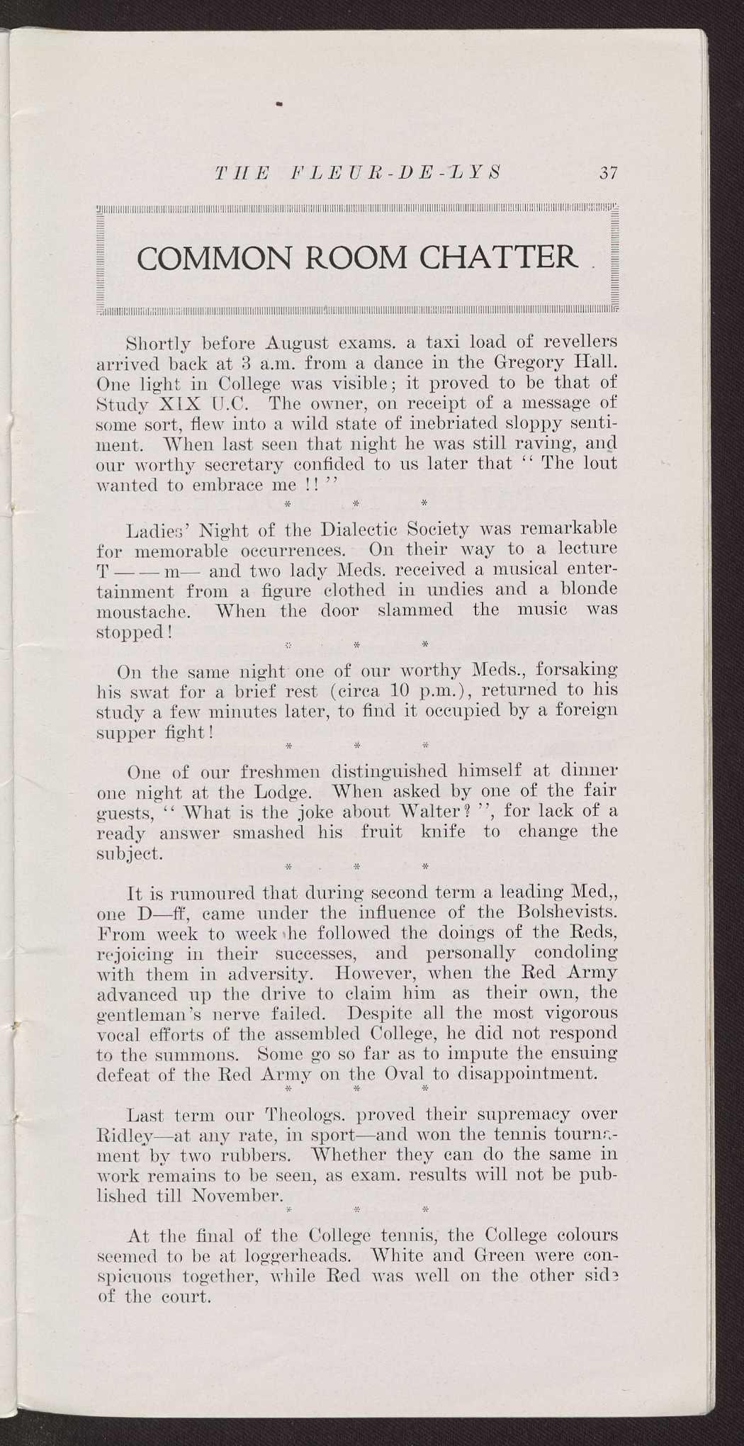 The University was not so successful this year in Inter'Varsity contests as in 1919. Several members of the College were included in the various teams. Messrs.