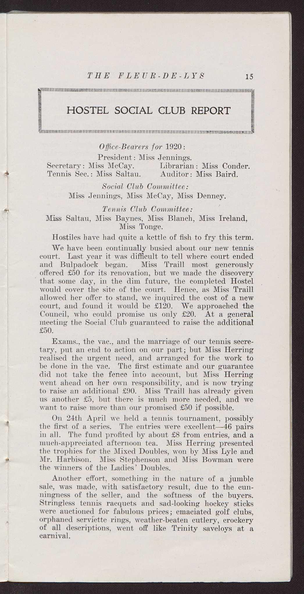 The College. Report for 1919-20 shows a small credit balance. This year, from the fact that there are more in residence, the financial position should be more secure, and the more so as the income from several large investments will be received for the first time. However, against this must be set off the increased cost of living and the higher rate of wages, and also a loan of over £1,000 which the Council has undertaken to pay off. An increase of fees is therefore forecasted.