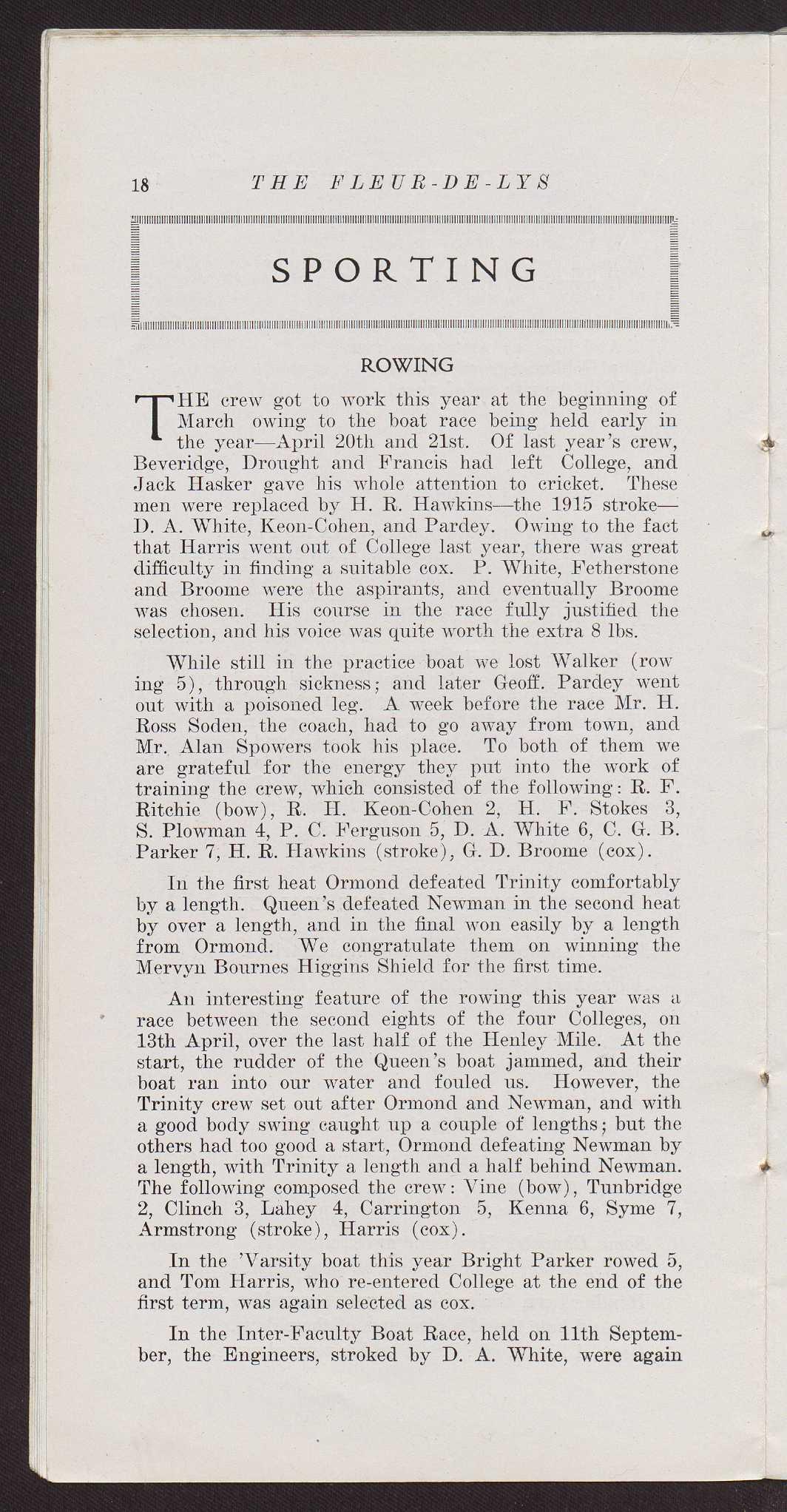 Rowing : Messrs. Hawkins, Parker and D. White.