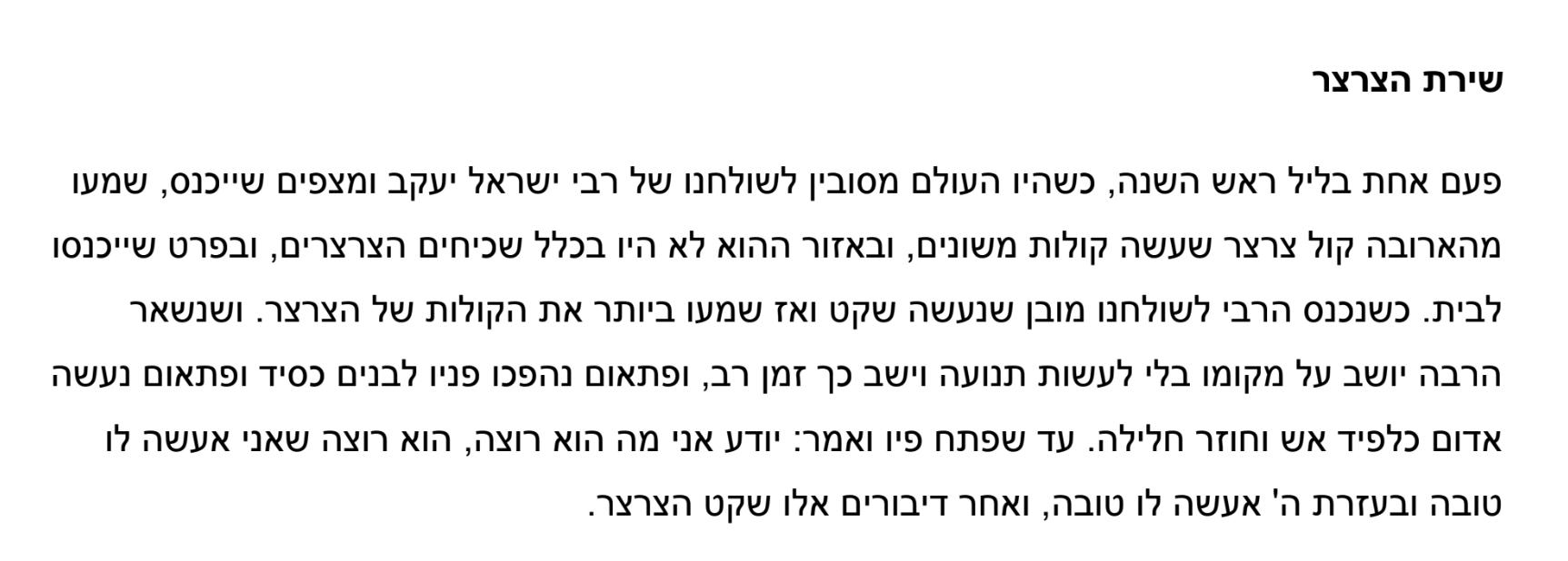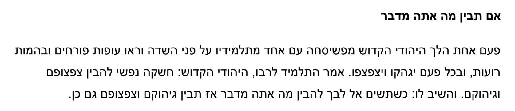 The Hasidic Story is a sub-genre in the Jewish oral tradition of storytelling and hagiography, originating from 18th century Eastern Europe. Hasidic stories are usually dreamlike in more than one sense. They are short, fragmented, picturesque, cryptic, physically impossible, and endlessly (un)interpretable. It has to mean something— but what?