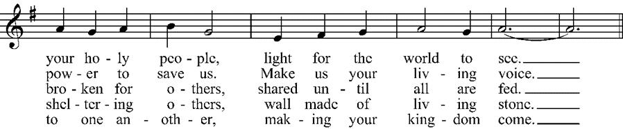 • Bold & Italicized Print = everyone is invited to join in singing.
