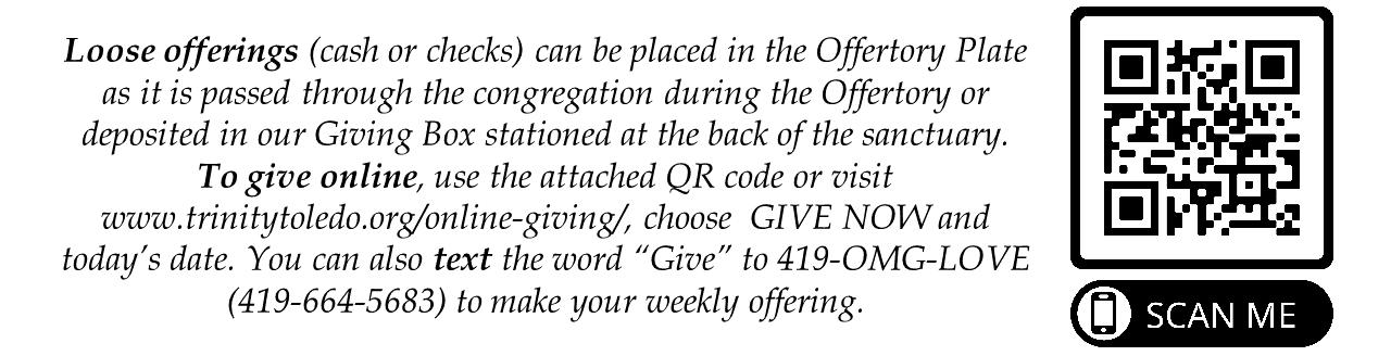 We challenge the practices of our tradition that have at times kept others out and instead embrace Jesus’ mandate to welcome all, no exceptions, as a core value. And, we get that if people are brave enough to either walk through the doors of a big gothic-looking church in downtown Toledo, or tune in to Trinity@Home on line, we better be serious about being explicitly progressive, inclusive and creative in all we say and do.