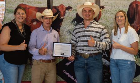 Para concluir, quisiera recordarles que, para seguir creciendo esta gran raza, todos debemos hacer un esfuerzo intencional. Esto ocurre cuando apoyamos a otros miembros asistiendo a sus ventas, brindamos consejos a productores jóvenes, compartimos nuestras voces e ideas en las reuniones, servimos en comités organizacionales y respaldamos a nuestros jóvenes y expositores en las exposiciones. Así es como construimos una comunidad vibrante y hacemos avanzar el Red Brangus.