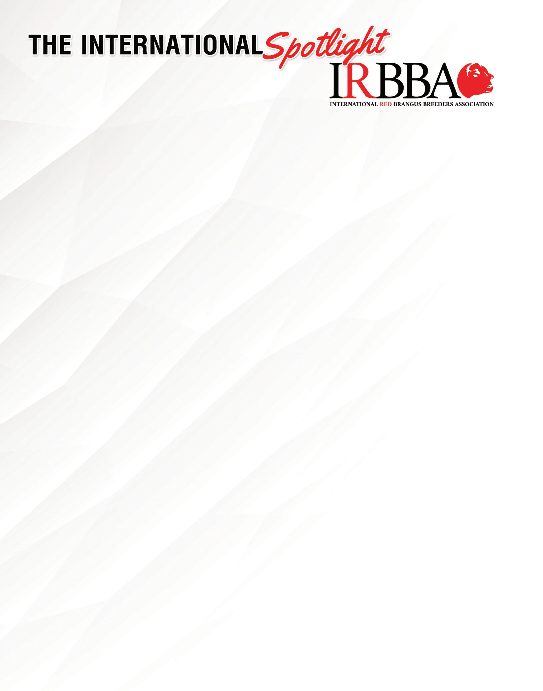 I would like to thank all members of the IRBBA for their support, and especially the Board of Directors, who give up their time to help promote the organization and brainstorm monthly on how to advance Red Brangus. These men and women are amazing and full of excellent ideas.